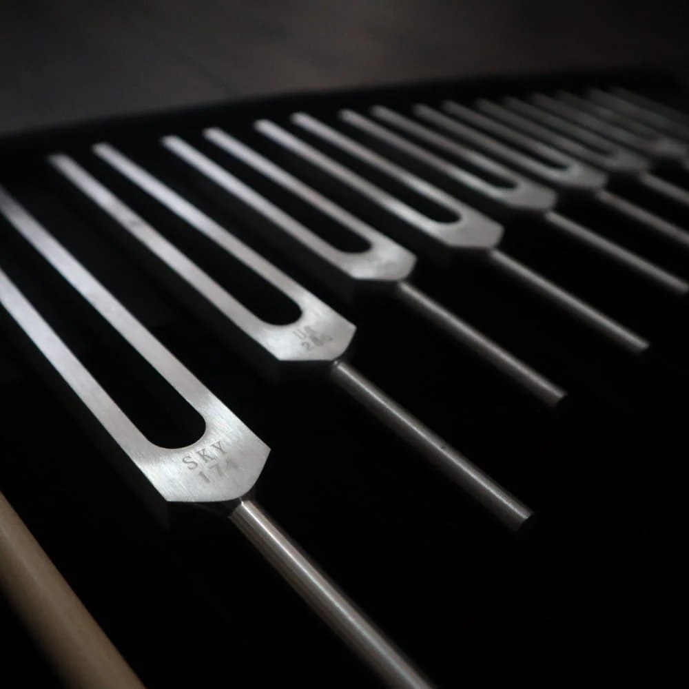 Our tuning forks are engineered with precision, ensuring each fork resonates with up to 0.25% accuracy based on the tuning fork frequency chart. Made from an aluminum alloy with magnesium, these forks are lightweight yet durable, built to provide years of reliable use. Their design makes them an excellent choice for any sound session, offering both exceptional performance and longevity.