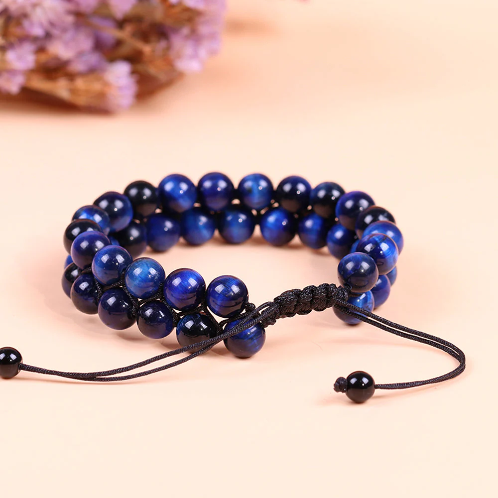 Blue Tiger Eye Dual Courage Luck Beaded Bracelet