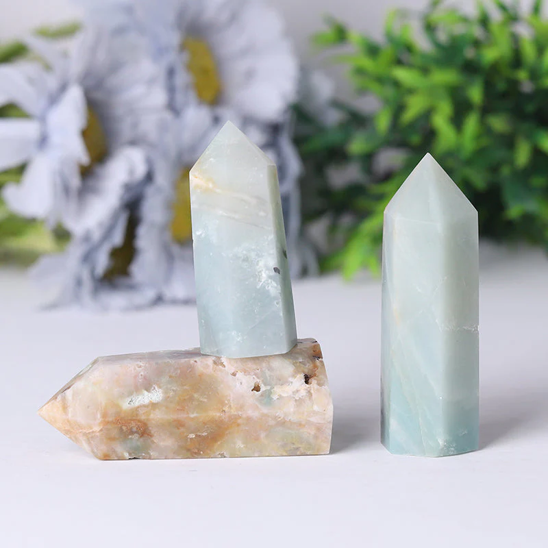 Our Caribbean Calcite towers pair beautifully with other crystal forms like spheres and pyramids for creating balanced crystal grids. Many practitioners find them particularly complementary to other blue stones like Angelite and Celestite when working with throat and third eye energies.