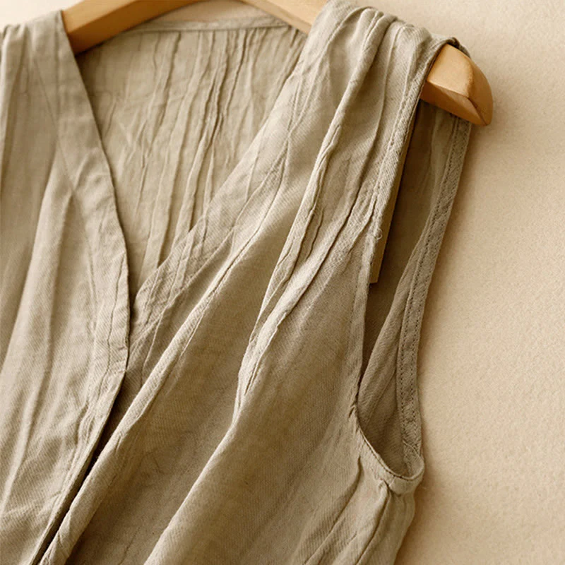 Cotton Linen V-Neck Vest | Women's Casual Yoga Top