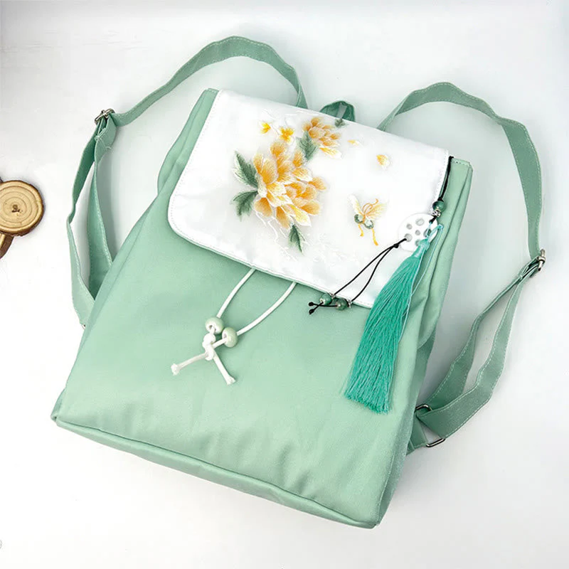 The green peony flower embroidery isn’t merely decorative—it is traditionally associated with prosperity, compassion, and transformation in various cultural beliefs. By incorporating these conscious fashion elements, the backpack serves as a daily reminder of your intentions and connection to nature’s wisdom.
