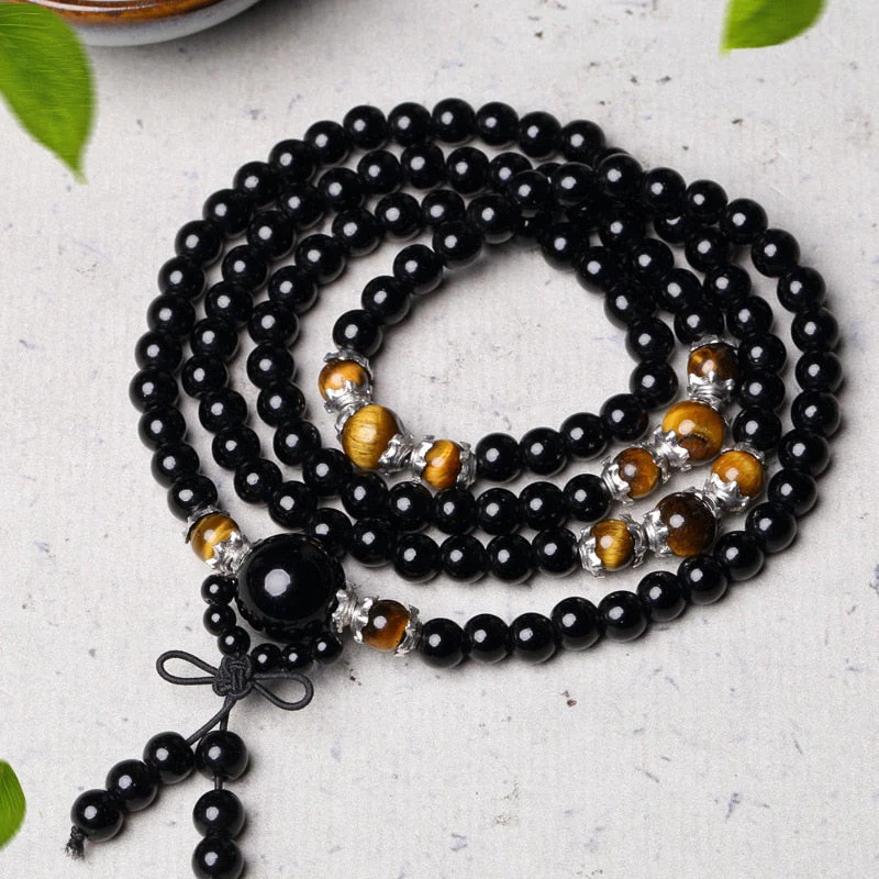 Obsidian Tiger Eye Mala Bracelet for Meditation