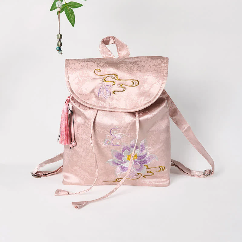 Pink Lotus Embroidered Backpack - Spiritual Apparel