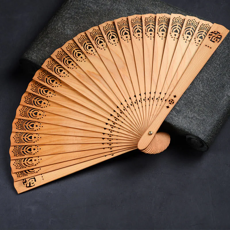 Meticulously handcrafted from premium Thuja Sutchuenensis wood, this fan features intricate engravings that tell stories of prosperity and good fortune. The delicate traditional chinese fan design showcases either the auspicious clouds pattern or the Fu character, both powerful symbols in Chinese culture representing harmony and blessings.
